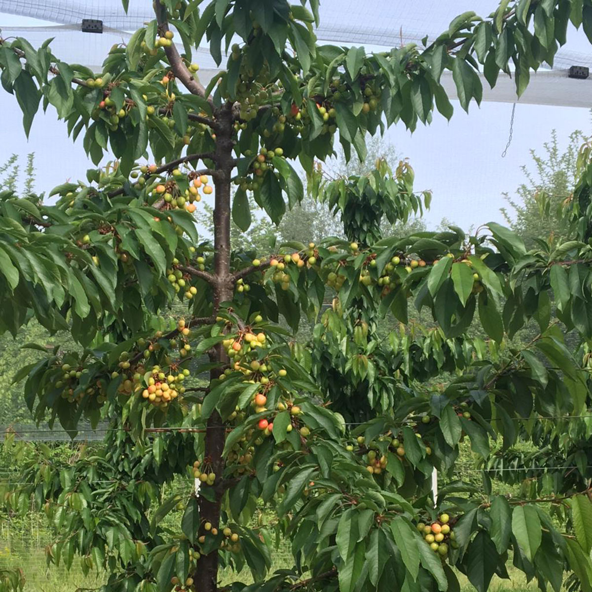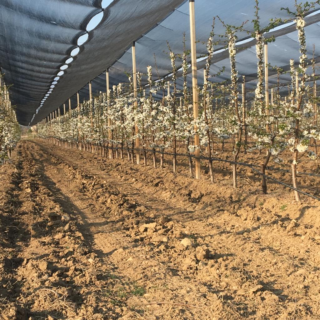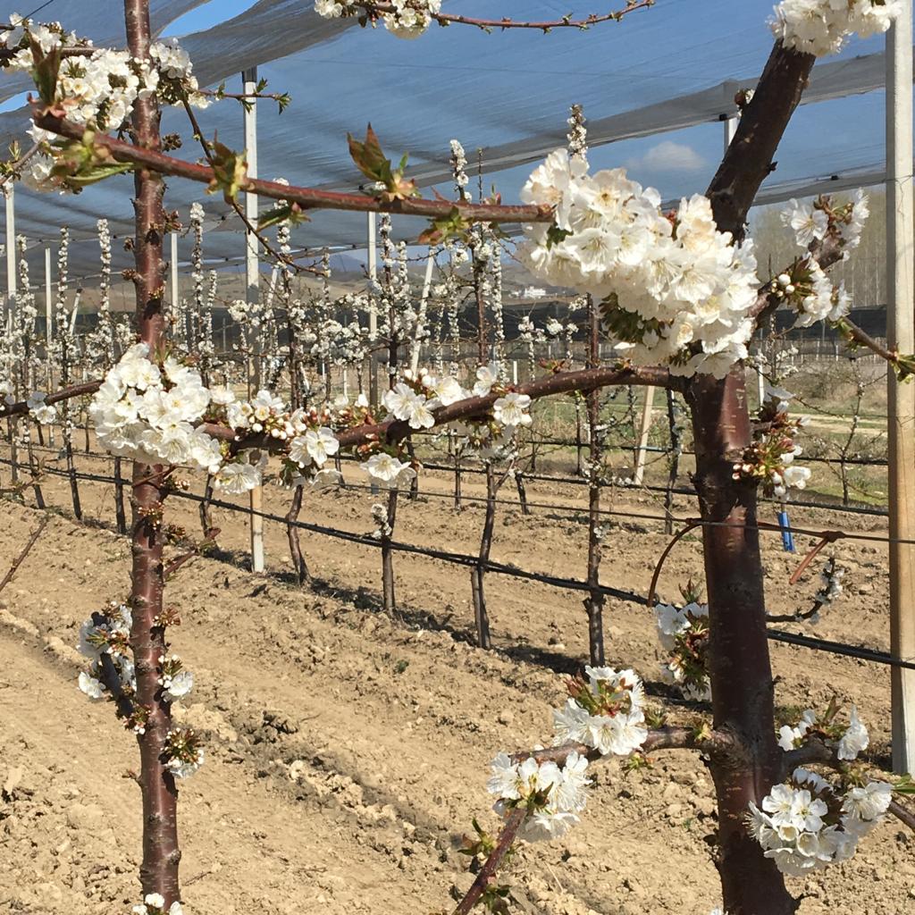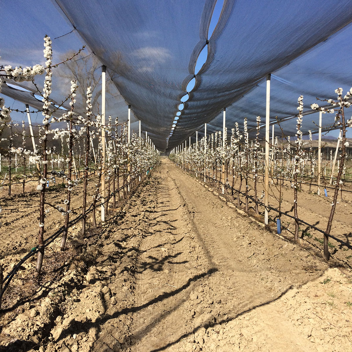 През 2016г. поставихме началото със засаждането на първата ни черешова градина на площ от 76 декара. Инвестирахме в изграждане на противоградна контрукция, капково напояване и в съвременна овощарска техника.